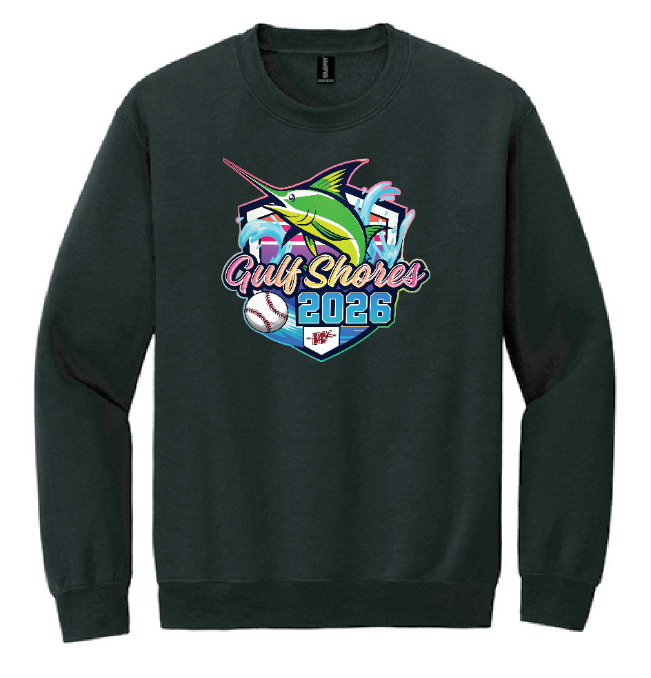 Gildan fleece crewneck Sweatshirt in black. Available in youth sizes small - x-large and adult sizes small - 4x-large.